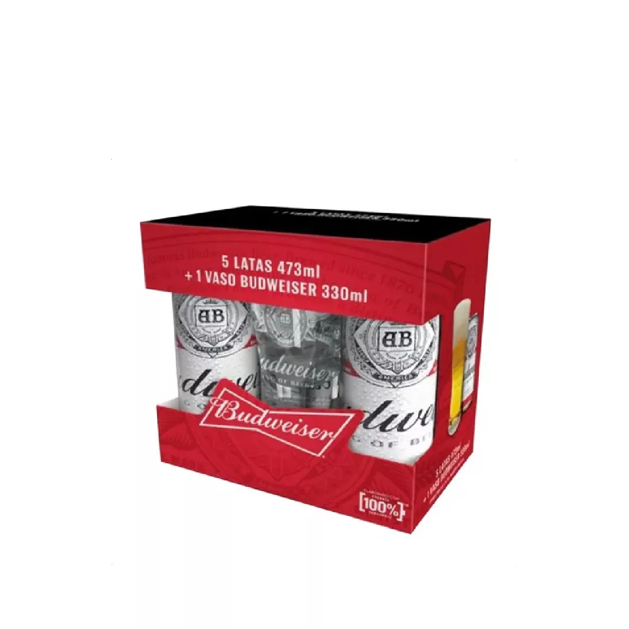 PACK BUDWEISER VASO CON 5 LATAS