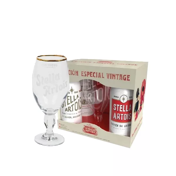 PACK STELLA COPA VINTAGE CON 4 LATAS